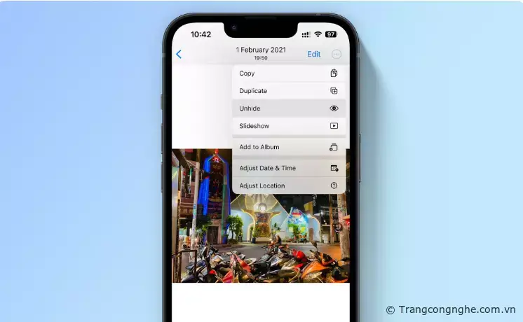 - Xác nhận bằng cách chọn “Hiện ảnh” (Unhide Photo).