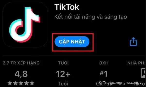 Để có thể sử dụng được tính năng này, yêu cầu ứng dụng TikTok trên điện thoại của bạn phải là phiên bản mới nhất. Bạn cần truy cập vào Cửa hàng ứng dụng để xem phiên bản TikTok đã được cập nhật chưa, nếu chưa hãy nhấn Cập nhật.