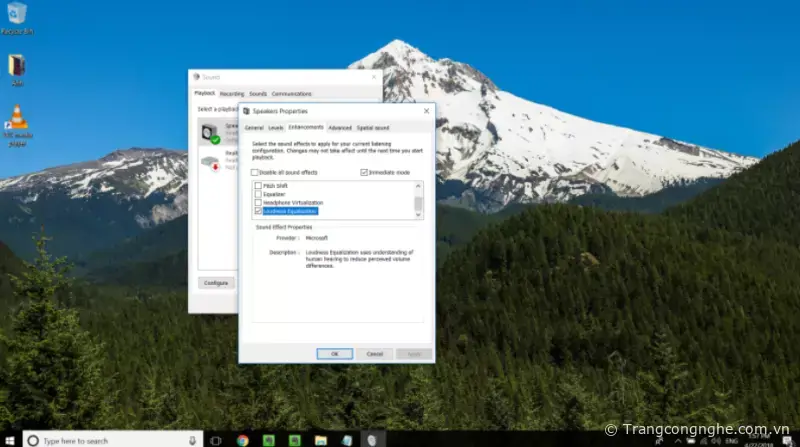 Bước 3: Chuyển sang tab Enhancemets - Stick chọn Loudness Equalization - Apply để xác nhận và ngay lập tức sẽ thấy hiệu quả.