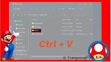 Bước 5: ‘Sao chép (Copy)’ thư mục MARIO trong file cài đặt > ‘Dán (Paste)’ bằng tổ hợp phím Ctrl + V vào ổ đĩa mới.