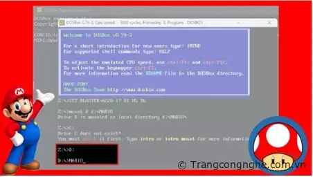 Bước 6: Gõ lệnh ‘mount d d:\Mario’ để tạo ổ đĩa ảo cho Mario Teaches Typing.