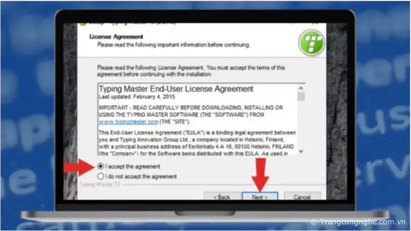 Bước 4: Tiếp theo, bạn hãy đồng ý với các điều khoản và điều kiện của phần mềm bằng cách chọn ‘I accept the agreement’.