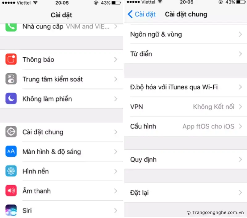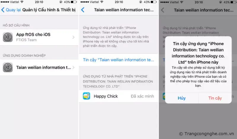 Kế tiếp cấp quyền cho ứng dụng vừa cài đặt, vào mục: Cài đặt - Cài đặt chung - Quản lí cấu hình và thiết bị - Taian weilian information - Chọn Trust.