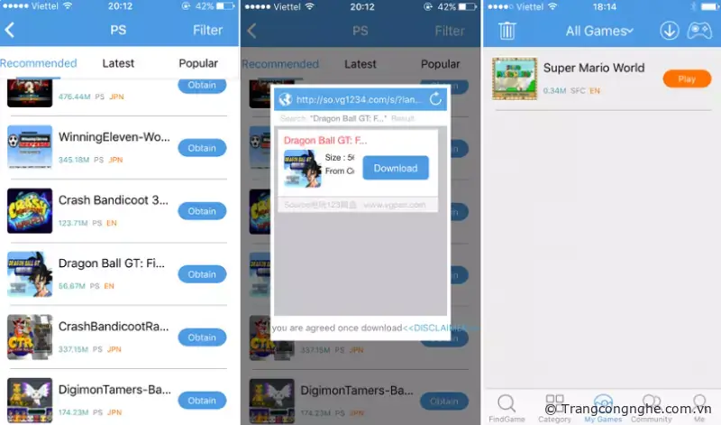 Sau khi chọn nền tảng, tiếp đến có thể tiến hành tải source game. Ví dụ bằng giả lập PlayStation: PS - Tựa game - Obtain - Skip - Download. Toàn bộ các game tải về sẽ nằm ở mục My Games, chỉ cần nhấn Play là có thể chơi, không cần thực hiện lại bước chọn nền tảng như ban đầu