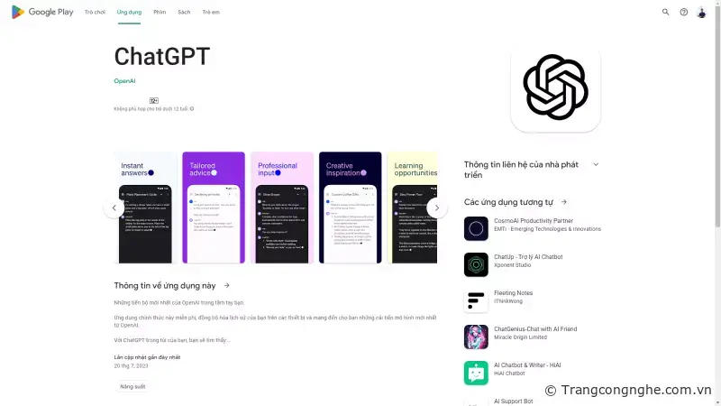 Vậy là Trang Công Nghệ đã hướng dẫn xong các bước để bạn có thể cài đặt ChatGPT trên Android, chúc các bạn thực hiện thành công.