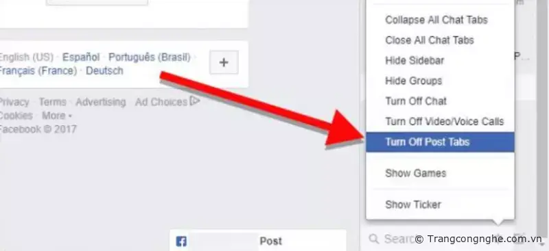 Tiếp theo, nhấp chọn Turn Off Post Tabs (tắt thẻ bài viết).
