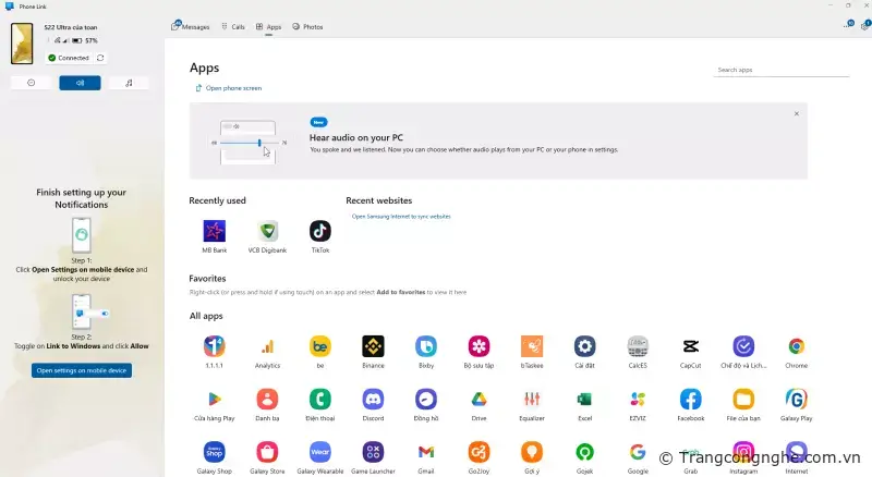 Bước 1: Kết nối điện thoại của bạn với máy tính Windows bằng ứng dụng Phone Link.