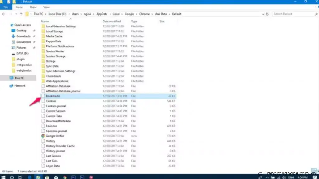Bạn có thể truy cập thư mục được đùng dể sao lưu tất cả lịch sử duyệt web và dấu trang của bạn trong Chrome theo đường dẫn dưới: