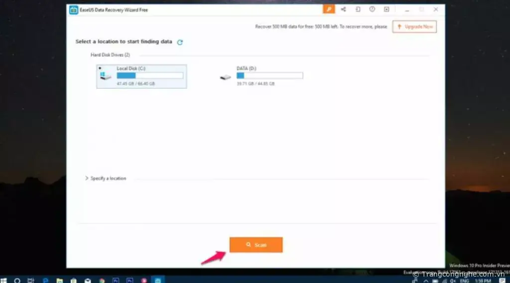 - Chọn ổ đĩa cần khôi phục sau đó click vào Scan.