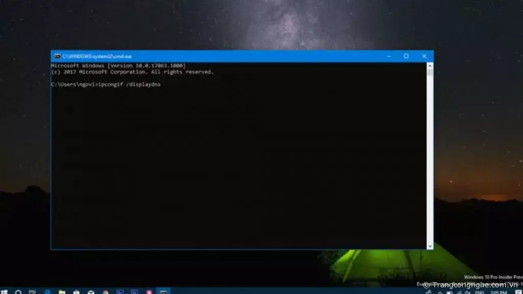 - Nhập ipconfig /displaydns sau đó click Enter.