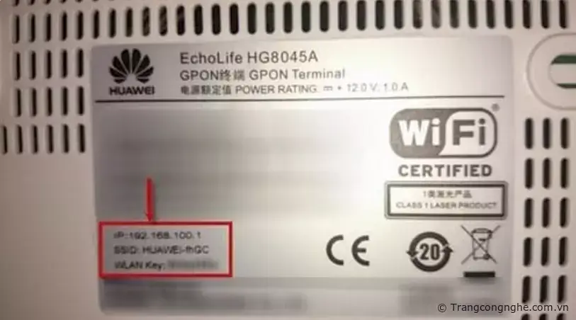 Ngoài ra, trong trường hợp bạn không thể đăng nhập Modem Huawei bằng các tài khoản trên. Bạn có thể sử dụng thông tin được in trên mặt sau của sản phẩm để đăng nhập. Thông thường trên các thiết bị modem Huawei, mặt sau sẽ cho chúng ta biết các thông tin cần thiết bao gồm địa chỉ IP, SSID tên WiFi và mật khẩu đăng nhập mặc định cho WiFi.