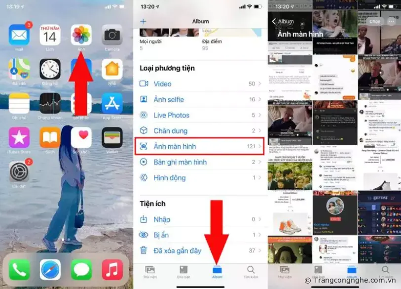 Để xem lại file ảnh chụp màn hình bạn chỉ cần vào ứng dụng Ảnh => Album => Ảnh màn hình, tại đây sẽ xuất hiện tất cả ảnh màn hình mà bạn đã chụp.