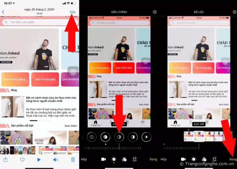 Để chỉnh sửa hãy vào Ảnh => Album => Video => ấn vào video mà bạn muốn chỉnh sửa => chọn Sửa tại đây bạn có thể chỉnh sửa video theo ý thích và cuối cùng ấn vào nút Xong để lưu video lại.