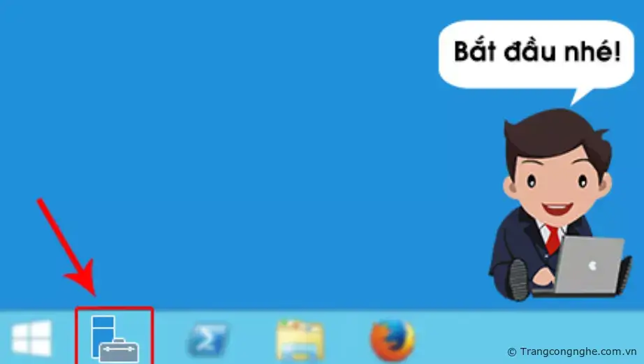 B1 : Tại màn hình Desktop của Windows bạn tìm kiếm "Server Manager" dưới cùng bên trái màn hình hoặc bạn có thể tìm kiếm qua công cụ Search trên thanh Menu Windows.
