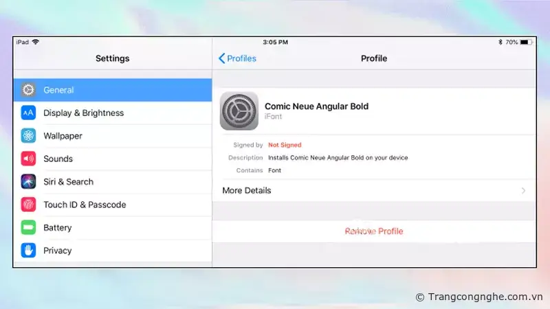 Từ đây, bạn cũng có thể xóa phông chữ bằng cách nhấn vào phông chữ đó, sau đó chọn Gỡ bỏ hồ sơ (Remove Profile).