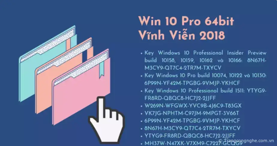 - Key Windows 10 Pro build 10074, 10122 và 10130: 6P99N-YF42M-TPGBG-9VMJP-YKHCF