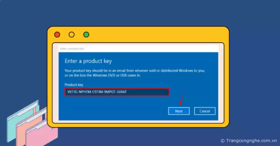 - Bước 5: Bây giờ, bạn hãy nhập Key Win 10 mới vào “Product Key” và bấm “Next”.