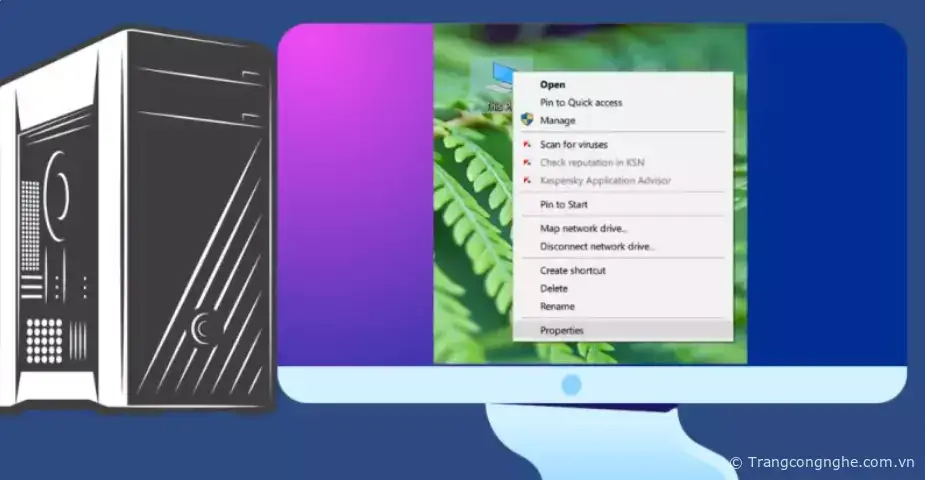 Lưu ý: Nếu biểu tượng This PC không hiển thị trên màn hình Desktop của bạn, bạn có thể kích chuột phải vào biểu tượng “This PC” ở khung bên trái, và sau đó chọn “System Properties”.