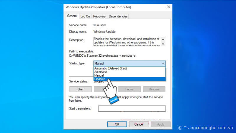 Bước 3: Đổi trạng thái tại mục Startup type thành Disabled> Nhấn OK để lưu.