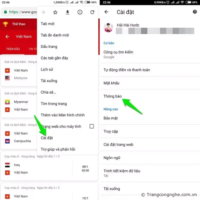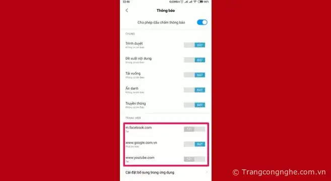 Để tắt thông báo cho trình duyệt Google Chrome trên Android, bạn thực hiện thao tác như sau: