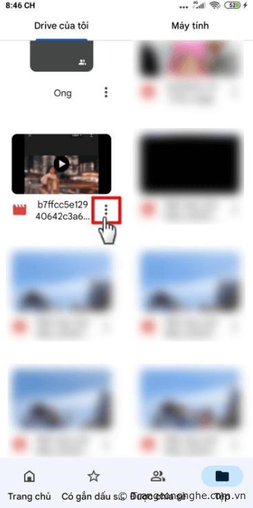 Bước 1. Kích hoạt ứng dụng Google Drive và bấm nút Tệp để duyệt đến vị trí lưu tệp video đã upload lên.