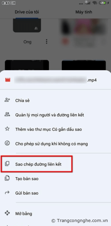 Bước 3. Trong menu hiển thị, chọn tùy chọn Sao chép đường liên kết.