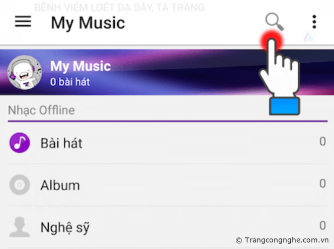Bước 3: Bấm vào hình kính lúp ở góc phải để tìm bài hát bạn cần tải.