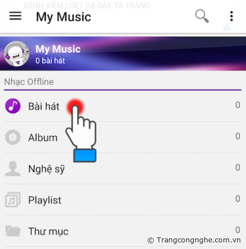 Bước 6: Thoát ra lại màn hình bắt đầu và chọn vào mục Bài hát.