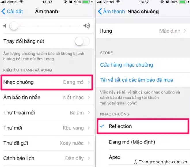 Sau đó chọn Ringtone (Nhạc chuông). Tại đây, bạn sẽ thấy một tùy chọn mới tên Reflection. Chọn nó và bạn đã hoàn tất quá trình cài đặt.