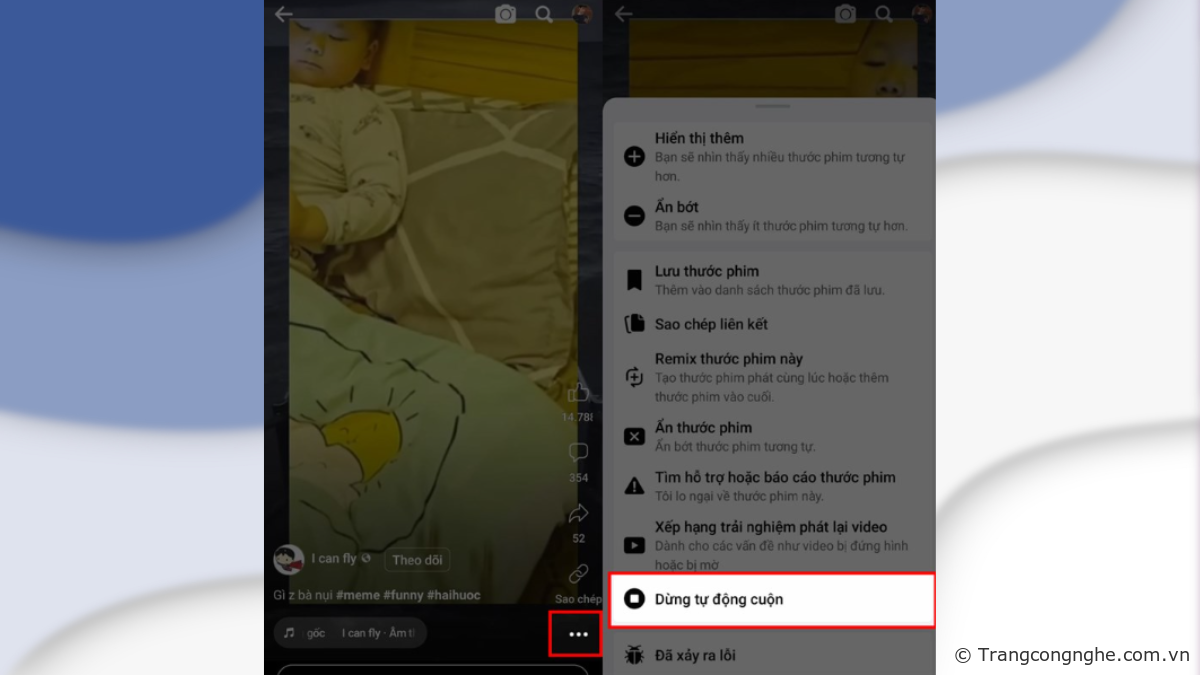 Khi muốn tắt chế độ tự động cuộn, bạn chỉ cần vào lại biểu tượng menu 3 chấm và chọn Dừng tự động cuộn.