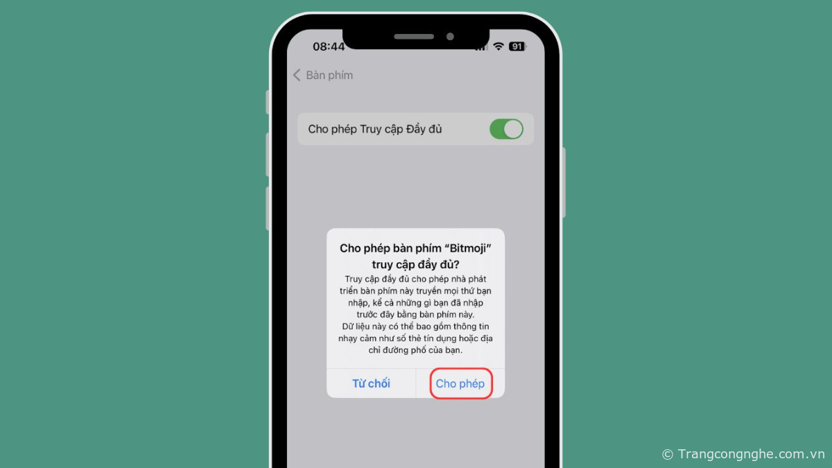 Bước 3: Bật Cho phép Truy cập Đầy đủ trong Bàn phím của Bitmoji rồi ấn Cho phép