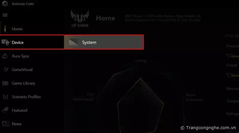 Bước 3: Sau đó bạn hãy chọn vào mục Device > System để có thể xem và chỉnh một số cài đặt cũng như chỉnh đèn nhé.