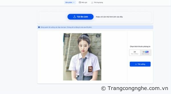Bước 2: Tải lên hình ảnh cần làm nét hoặc kéo thả ảnh vào mục tải lên trên website.