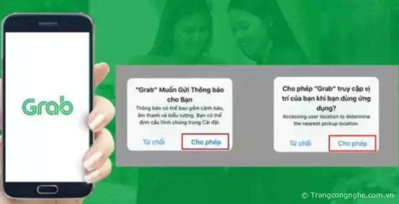 Bước 2: Đợi một lát là quá trình cài đặt Grab hoàn tất, nhấn vào Mở để bắt đầu đặt xe ôm. Ứng dụng sẽ yêu cầu cấp phép truy cập vị trí của bạn.