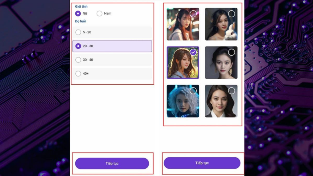 Bước 3: Cung cấp thông tin cá nhân như giới tính, độ tuổi và chọn một phong cách bạn muốn.