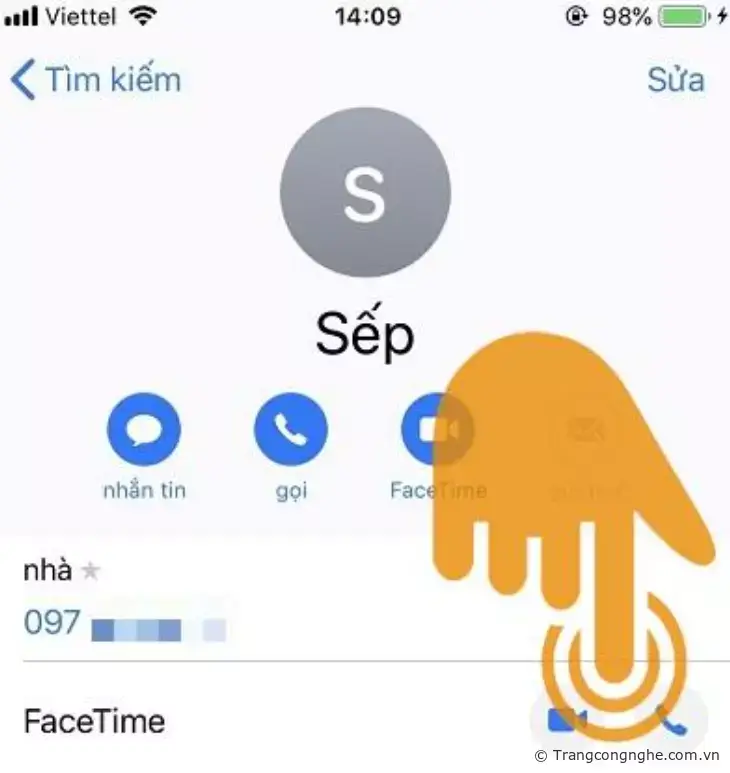 Từ danh bạ trên thiết bị của bạn, bạn sẽ thấy phần Facetime. Nhấn nút để gọi video và nhấn nút để gọi thoại.