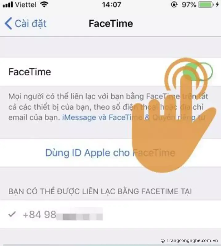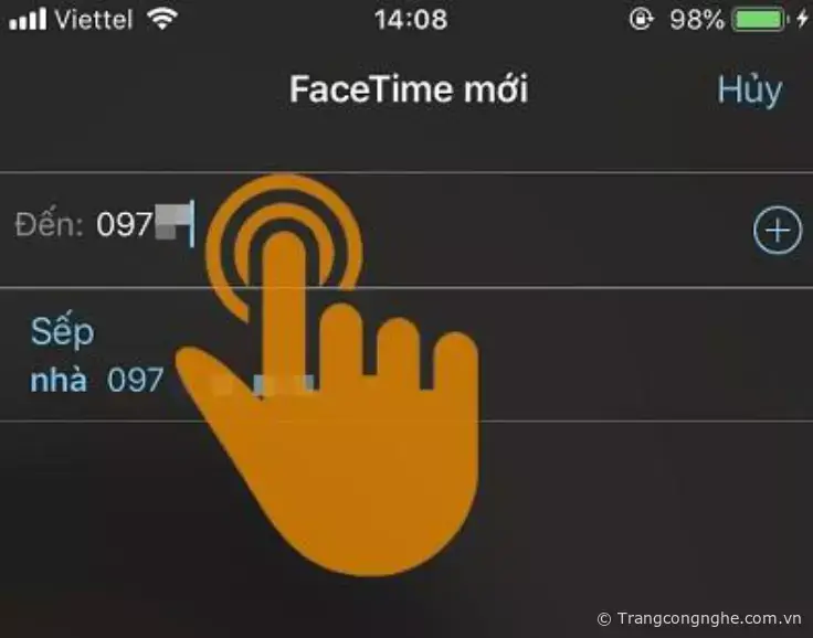 Lưu ý: Bạn có thể chọn số điện thoại hoặc ID Apple để gọi Facetime. Tùy chọn thay đổi bên dưới.