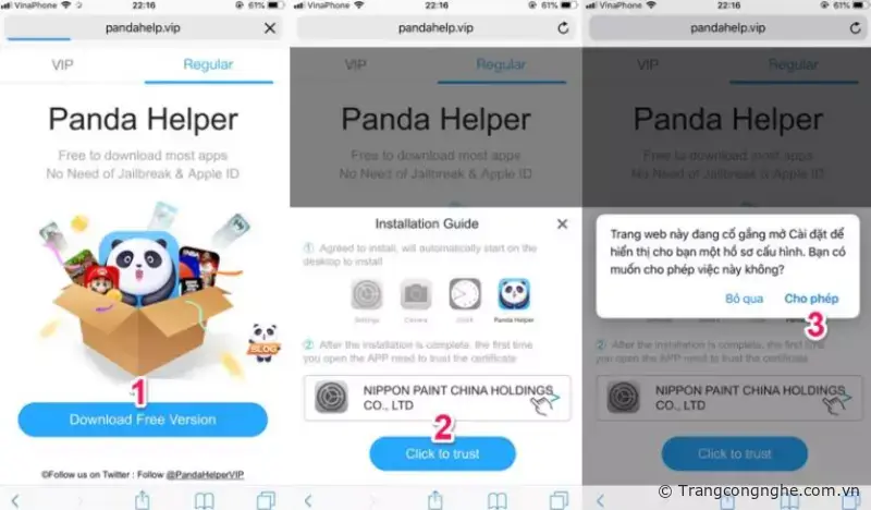 B1: Truy cập liên kết Panda Helper-Downlowd Apps for Free on iOS device! và tiến hành cài đặt ứng dụng Panda Helper trên iPhone, iPad hoặc iPod touch.