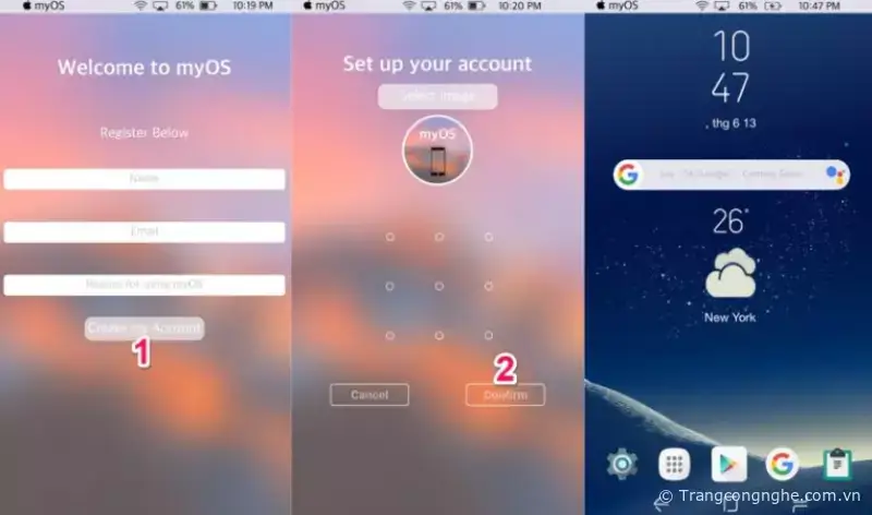 Để sử dụng myOS, bạn chỉ cần mở ứng dụng và nhập vào một số thông tin cần thiết như tên quản trị, ảnh đại diện. Nhấn nút Continue để tiếp tục truy cập vào giao diện chính của Android giả lập. ![]()