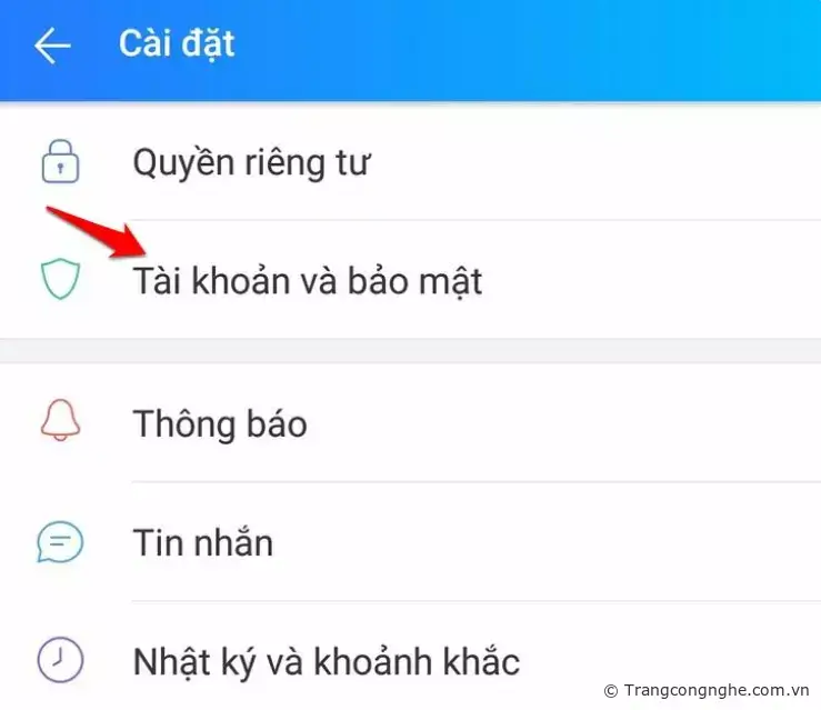 - Sau đó chọn “Tài khoản và bảo mật”.