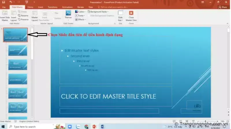 Sau đó, bạn hãy cuộn lên trên, chọn slide đầu tiên để tiến hành định dạng cho toàn bộ các slide.
