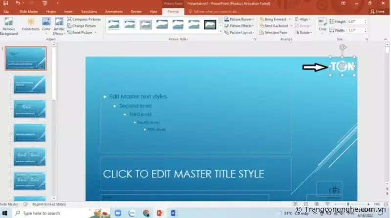 Sau khi đã chọn xong logo, bạn chỉnh sửa lại vị trí đặt và kích thước logo sao cho phù hợp rồi click chuột ra ngoài.