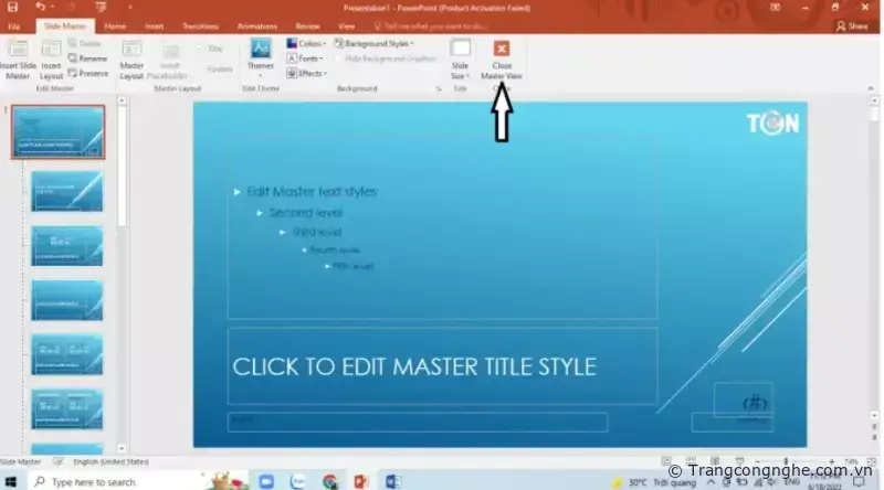 Sau đó, bạn quay lại tab View, kích chọn vào Close Master View để hoàn thành việc chỉnh sửa.