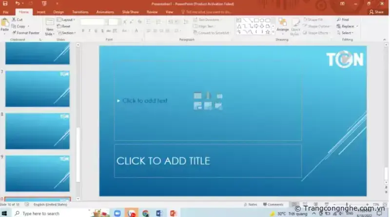 Và đây là kết quả nè, tất cả các slide để đã có logo ở vị trí mà bạn đã đặt.