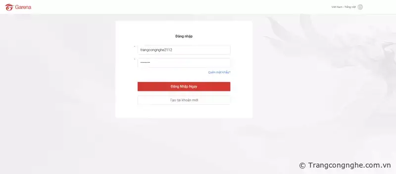 Tiến hành nhập tài khoản và mật khẩu để đăng nhập Garena