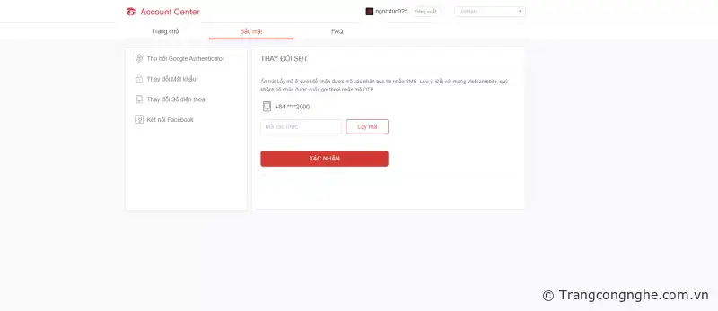 Bước 5: Chọn " thay đổi Số điện thoại xác thực"