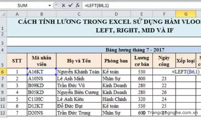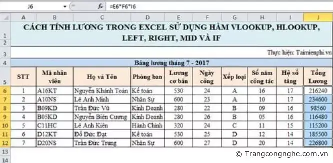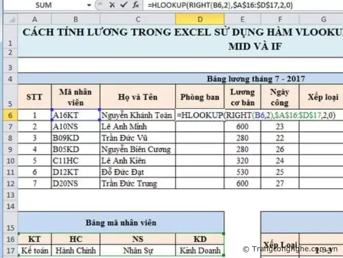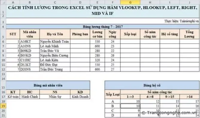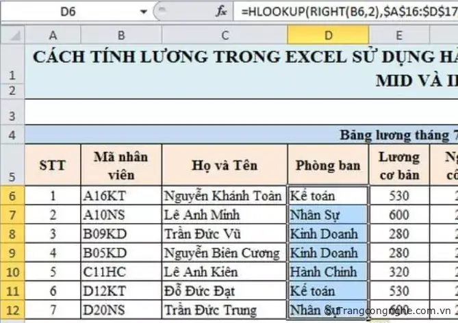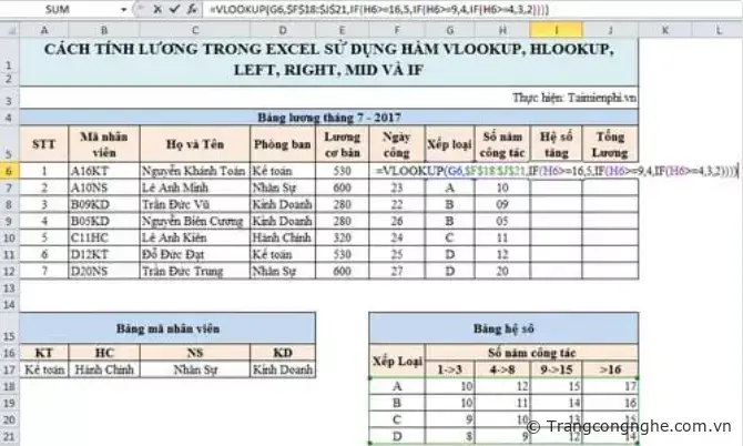 CÁCH TÍNH LƯƠNG TRONG EXCEL SỬ DỤNG HÀM VLOOKUP, HLOOKUP, LEFT, RIGHT, MID VÀ IF