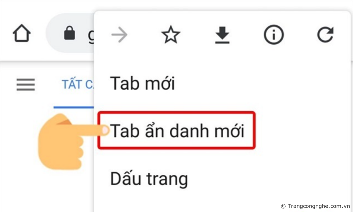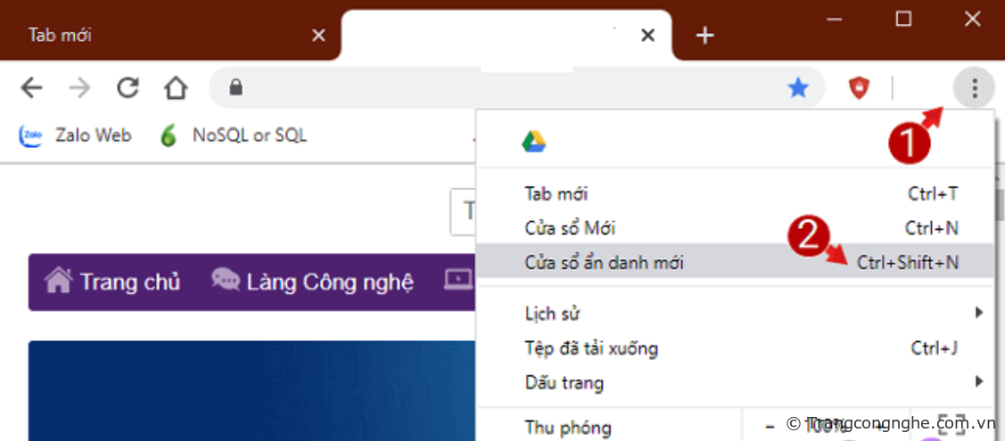 Bước 2: Một cửa sổ bật ra và lựa chọn "Tab ẩn danh mới"