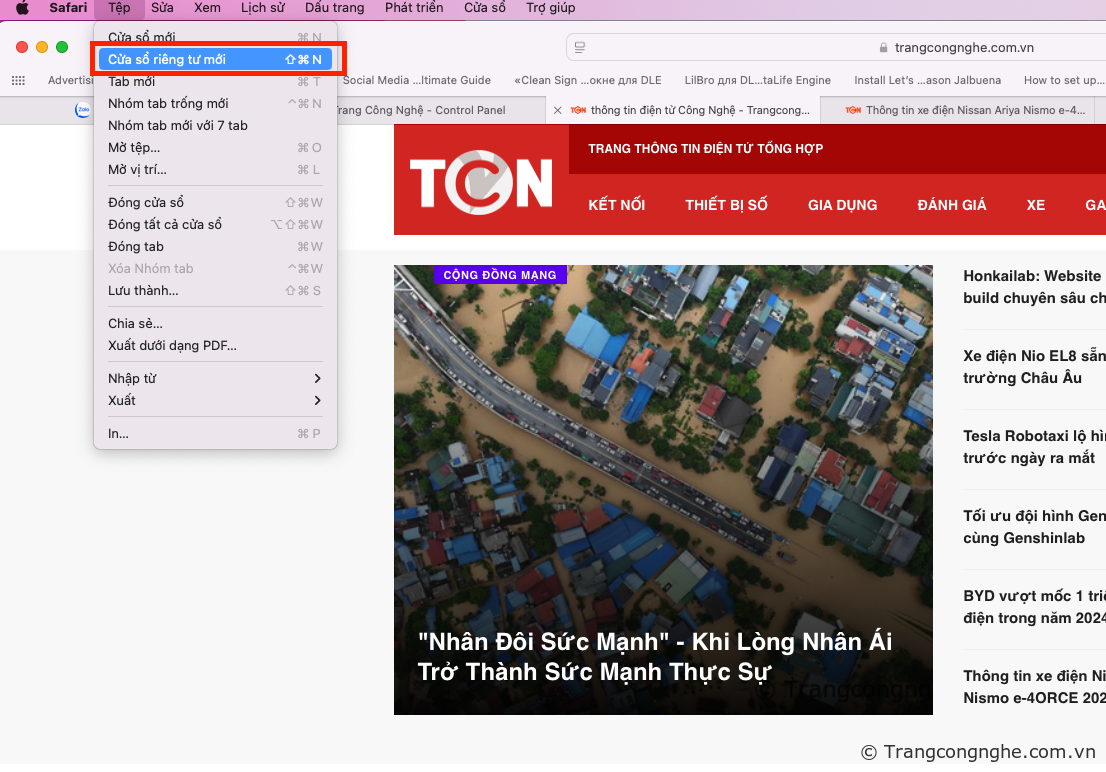 Cách 2: Tại trình duyệt Safari bấm tổ hợp phím Shift + Command + N