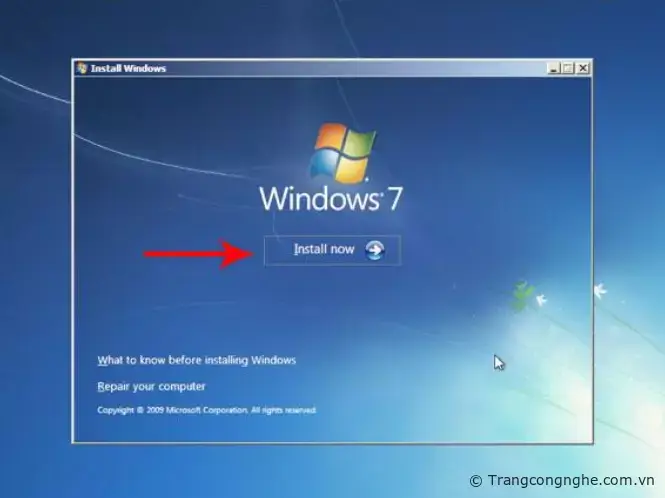 Bước 1: Bạn có thể cài đặt windows từ thiết bị USB hoặc ổ đĩa cứng, sau khi đã chọn được ngôn ngữ cài đặt bạn hãy bấm Install now.